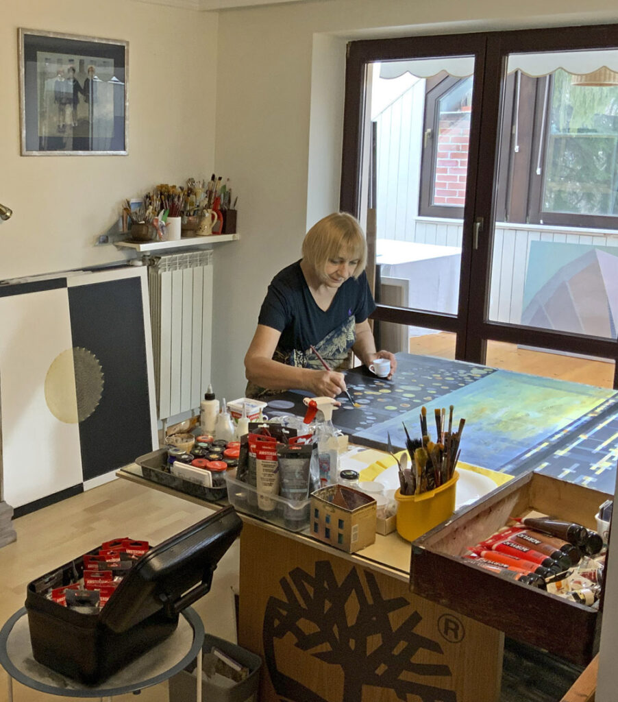 Dla tych tematów znajduję środki wyrazu tworzące mój własny język malarski. Moja technika malarska jest zróżnicowana. Stosuję wielokrotne laserunki, które mają wywołać u odbiorcy spokój i ciszę, a gruboziarnistymi fakturami opisuję przestrzeń i załamania światła.