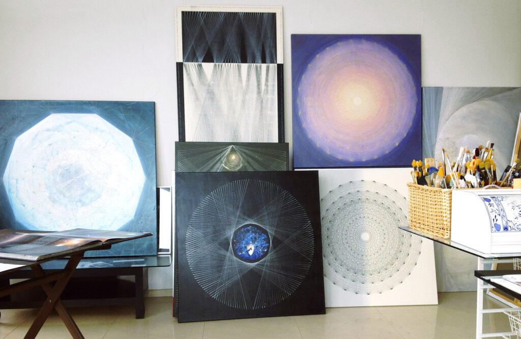 Z pozornie abstrakcyjnej plątaniny malarskich znaków wyłaniają się tematy nurtujące naukę i filozofię, tematy wkraczające w tajemnicze obszary metafizyki.